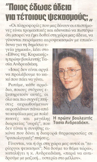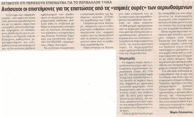 Σας παρουσιάζουμε μία συλλογή από ανησυχητικά δημοσιεύματα τύπου και διαδικτύου για τους αεροψεκασμούς.